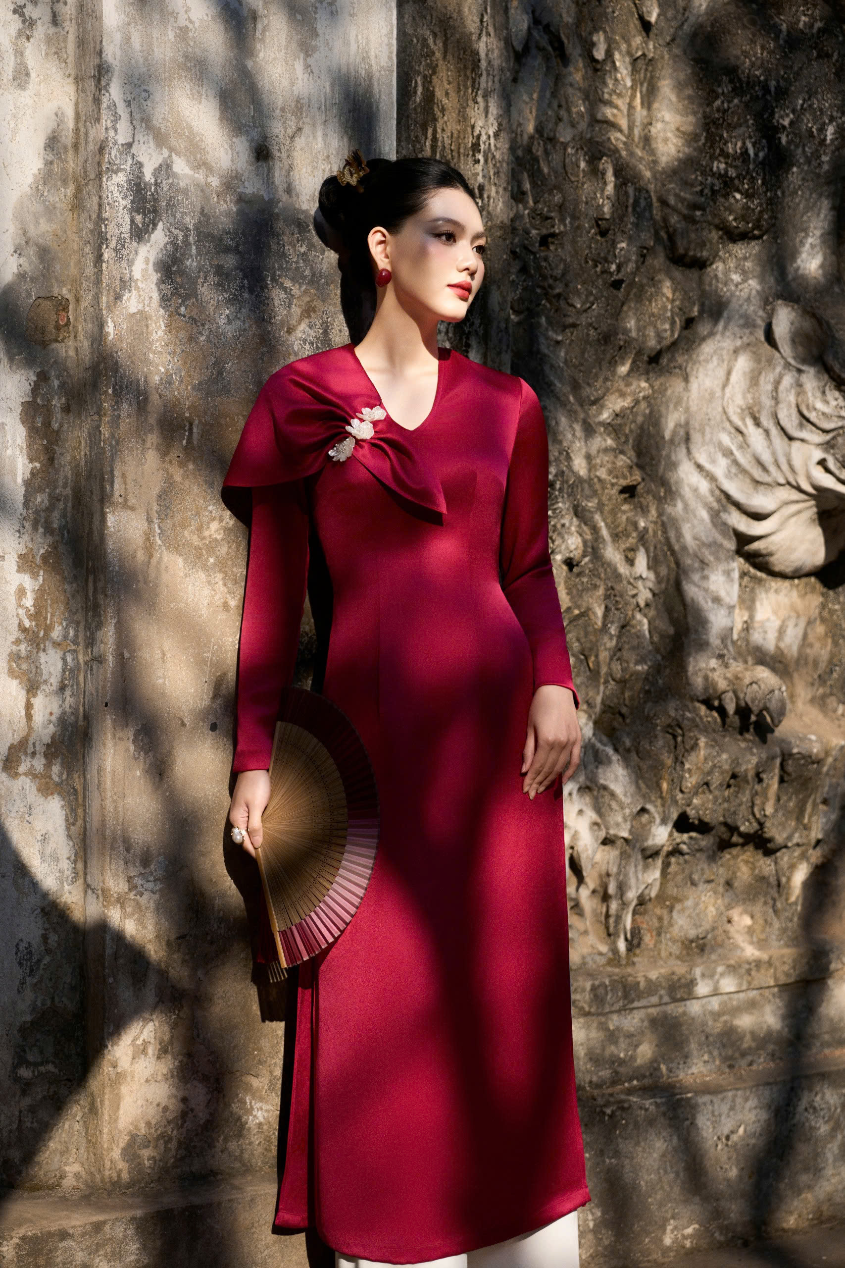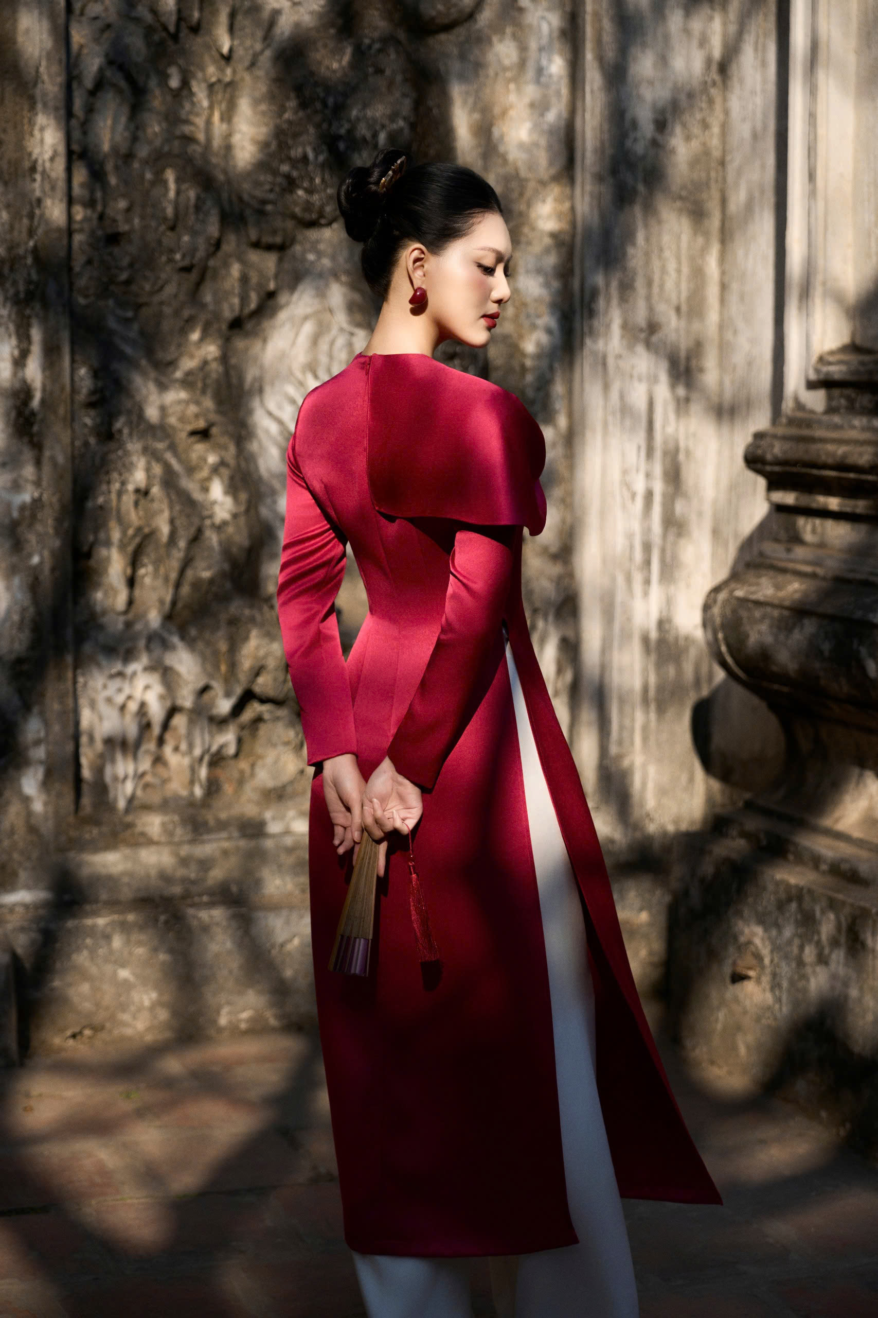 Chất liệu : Silk Taffeta với bề mặt óng nhẹ, đứng phom nhưng vẫn mềm mại, bắt sáng tinh tế, gợi nét rạng rỡ và thanh khiết của mùa Xuân.