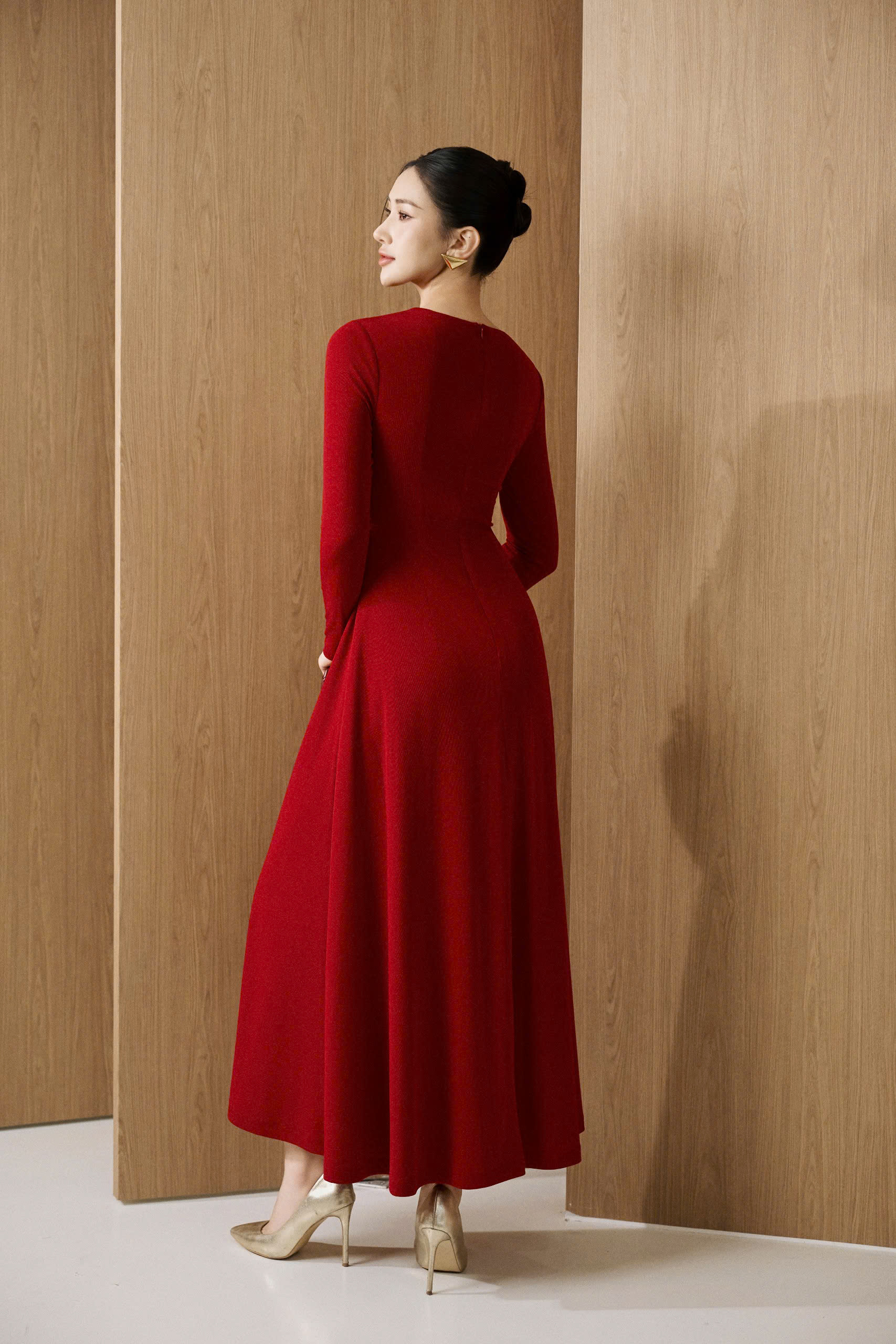 Elise Dress / đỏ khoen hở vai dài